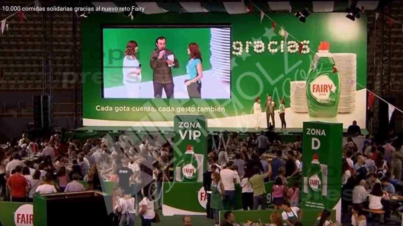 Nuestras mesas y bancos plegables de madera de alquiler estuvieron presentes en el Palacio Vistalegre de Madrid en este evento. Fairy organizó este evento solidario para el Banco de Alimentos de España. Nuestras mesas plegables alemanas sentaron a los asistentes a este acto, donde se consiguieron diez mil comidas solidarias!