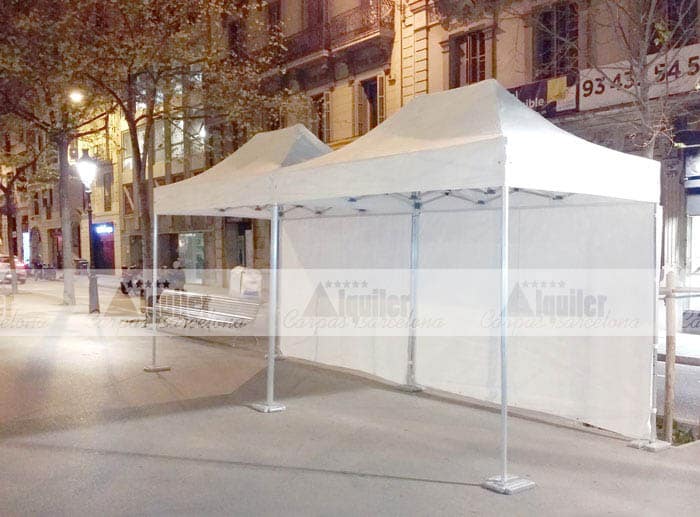 Así presentamos esta carpa modular de 6x2m de alquiler para la festividad de Sant Jordi. Este día, en la ciudad de Barcelona, se montan cientos de paradas para vender libros y rosas. Y, en muchas calles, nos encontramos con una limitación de espacio, y es ahí donde debemos montar nuestras carpas de 3x2m de alquiler. En este caso, con la unión de dos de ellas, montamos este módulo de 2x6m en la Rambla de Catalunya.