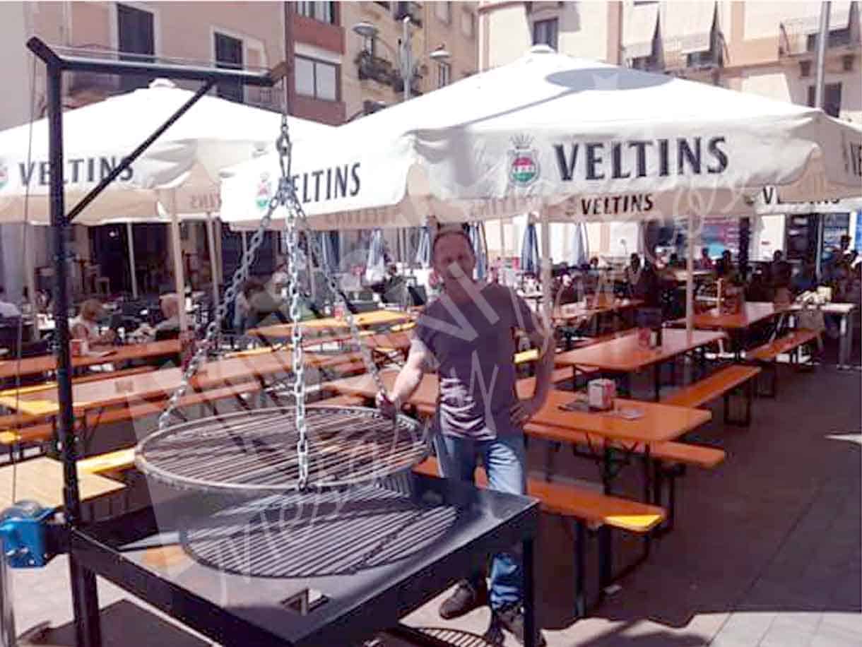 Nuestras mesas y bancos plegables de madera de alquiler estuvieron en esta fiesta cervecera en Tarragona. Nuestro cliente nacido en Alemania, pero afincado en nuestro país hace años, organizó esta Oktoberfest en su local. Conocedor de que nuestras mesas cerveceras son las auténticas de la Oktoberfest quiso contar con ellas.