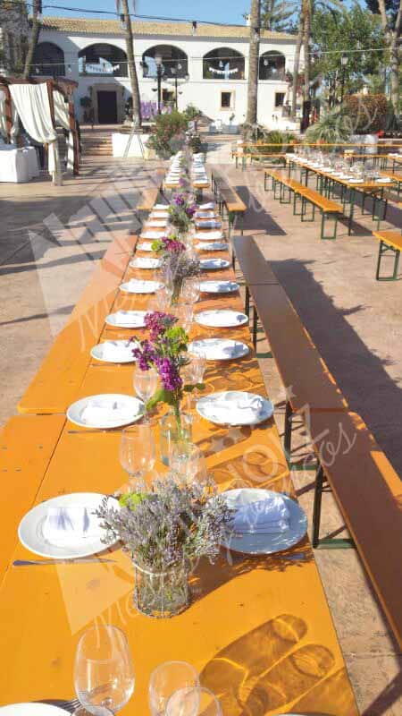 Nuestros sets cerveceros viajaron hasta Alicante, donde sentaron a los asistentes a esta fiesta. Nuestras mesas plegables de alquiler viajan por toda España, y eso es gracias, en gran parte, a las recomendaciones de nuestros clientes. Siempre enviamos nuestras mesas y bancos cerveceros de alquiler en perfecto estado, limpios y sin roturas, no hay más secreto que este, un material impecable.