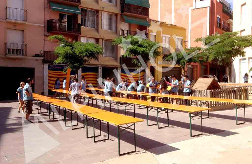 Alquiler de mesas y bancos plegables para fiestas populares, así como asociaciones, ferias, mercados, eventos de empresa…