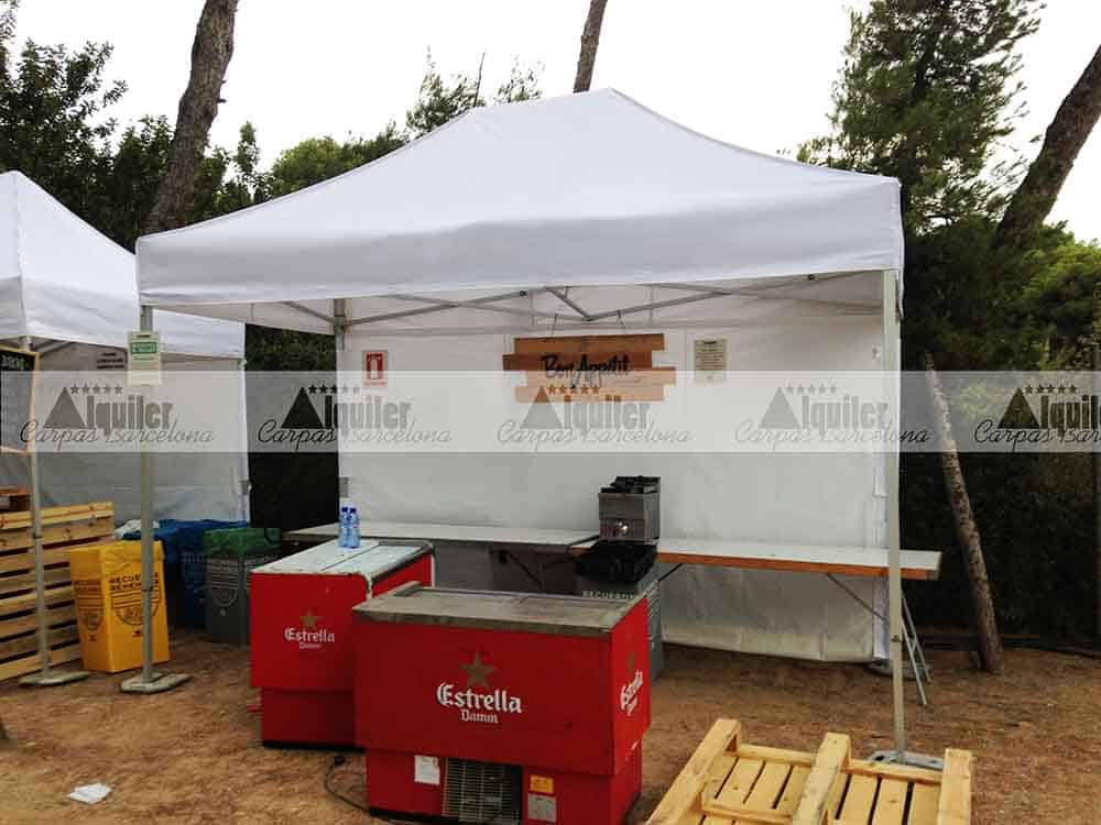 Dos carpas perfectas para un servicio ágil, en el que en un momento podemos montar y desmontar rápidamente. Además de de una robustez que da una seguridad en caso de inclemencias meteorológicas, como la lluvia o el viento.