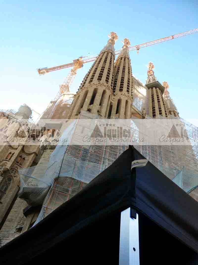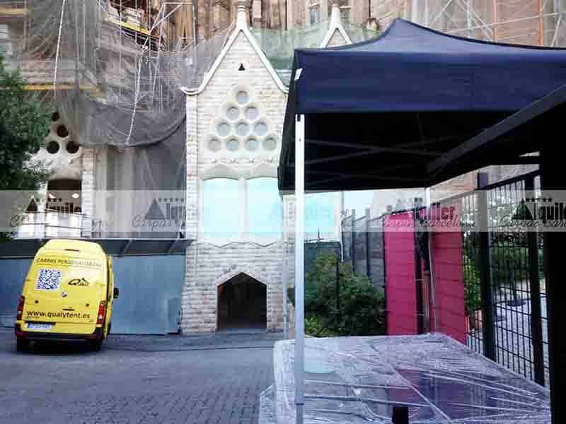 En un acto protocolario, en la Basílica de la Sagrada Familia de Barcelona, montamos esta carpa de 4x2m. Una carpa de alquiler en color negro, para dar cobertura a las personalidades que debían dar un discurso. Una carpa segura y lista para total confianza.