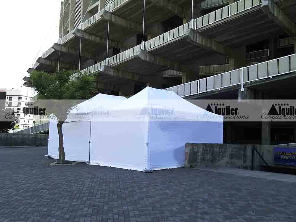 En este evento deportivo, celebrado en las instalaciones del Camp Nou, montamos esta carpa de 8x6m de alquiler. Un espacio cerrado y seguro perfecto para poder guardar y almacenar las diversas necesidades que se precisen. Esta carpa esta compuesta por dos carpas plegables de 4x6m de alquiler, que unidas entre si, y con nuestras paredes de cierre integral, conforman el módulo.