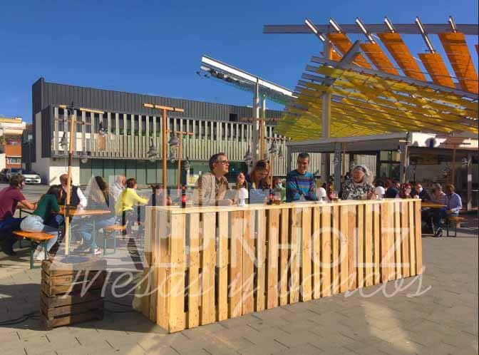 Alquiler de mesas y bancos plegables de madera, las auténticas mesas cerveceras. Mesas plegables de alquiler para fiestas, eventos, catering, hostelería…