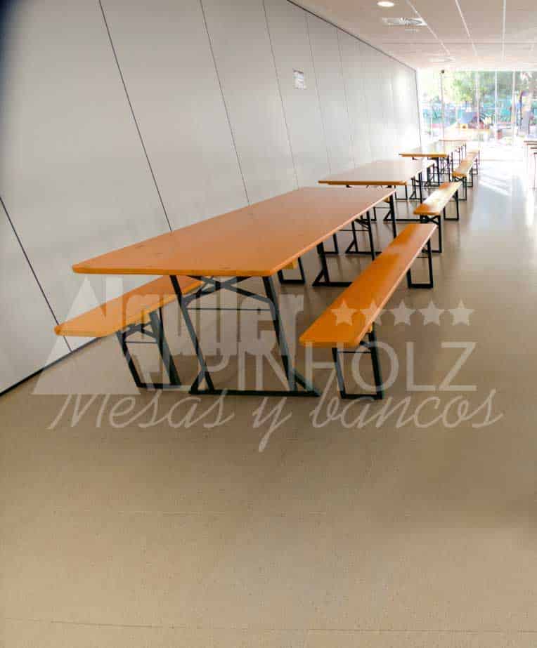 Alquiler de mesas y bancos plegables de madera para eventos de empresa, fiestas, ferias, comedores, asociaciones scout… Alquiler de mesas plegables alemanas en Barcelona, Madrid, Vigo, Zaragoza, Alicante…