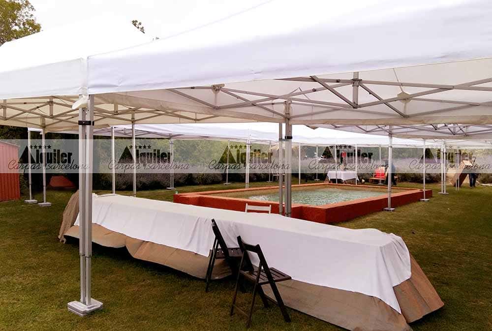 Alquiler de carpas plegables para fiestas, celebraciones, cumpleaños, eventos.. Carpas blancas de alquiler perfectamente saneadas, cada vez que el material vuelve al almacén se limpia y desinfecta para total seguridad.